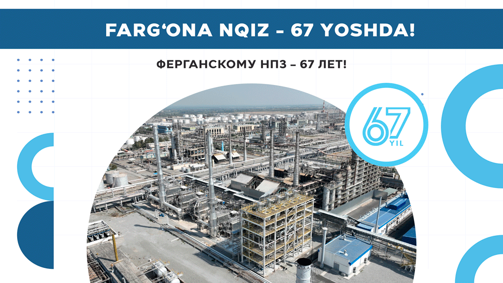 Поздравляем Ферганский НПЗ с 67-летием со дня основания и желаем коллективу стабильной работы, дальнейшего развития, новых профессиональных достижений и уверенного движения вперед.